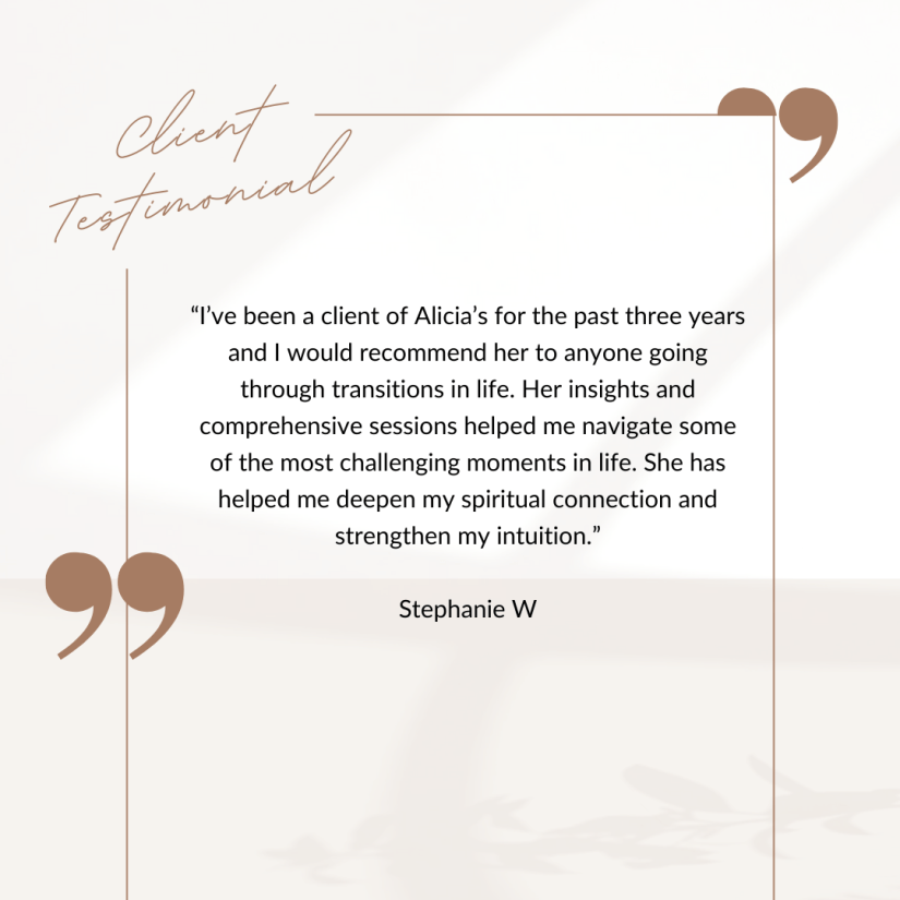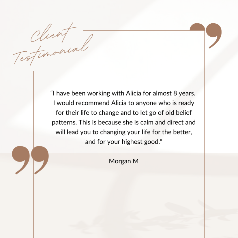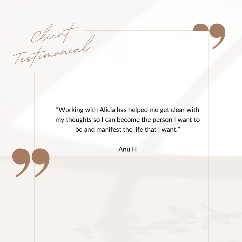Working with Alicia has given me a greater sense of confidence when evaluating my own emotions and reactions to life events, big or small. Her insights have validated what I have, for the most part, always known about myself and my instincts, but it is deeply reassuring and comforting to have Alicia’s insight…